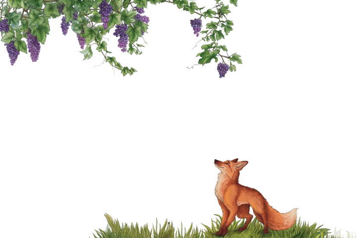 "The luckless Fox after an hour, decided “those grapes are sour."
